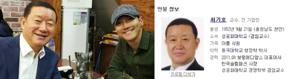 이미 연예계 대표 금수저로 알려진 최시원은 아버지가 성공회대학교 겸임교수이자 보령제약그룹 보령메니앙스 대표이사를 지낸 기업가 최기호 씨이며 참고로 이러한 최시원의 집에 전용 헬기까지 있다는 소문이 무성해 이는 언론에까지 보도된 바 있습니다.
